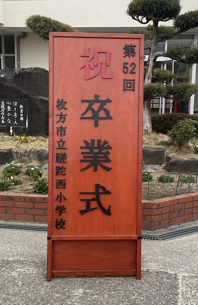 枚方市立さだ西小学校にて第52回卒業証書授与式が行われ、79名の卒業生が6年間の課程を終えて巣立っていきました。証書を受け取る姿はとても凛々しく、成長を感じる瞬間でした。
