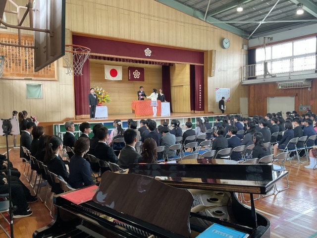 式では、卒業生の歌声や呼びかけが体育館に響き、心温まる時間となりました。