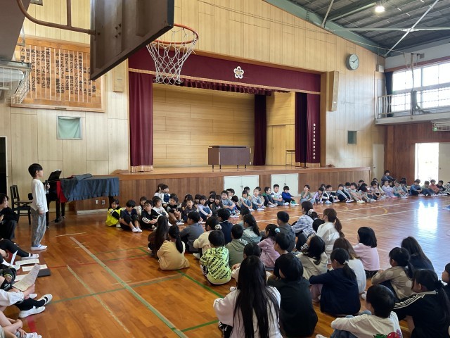 今日は、1年生と2~6年生が初めて顔を合わせる「対面式」を行いました。異学年の交流を通して学校全体でのつながりを育む行事です。