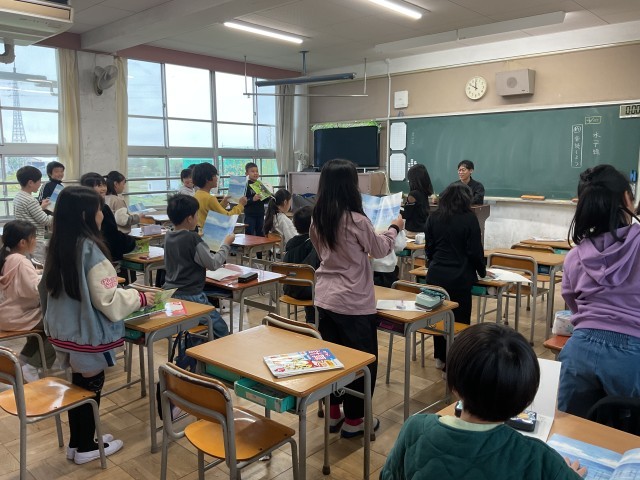 隣のクラスでは、教科書に載っている詩「水平線」を音読していました。子どもたちは、譲り合って順番を決めたり、聞き手に届く大きな声で読んだりと、4年生らしい姿勢で取り組んでいました。