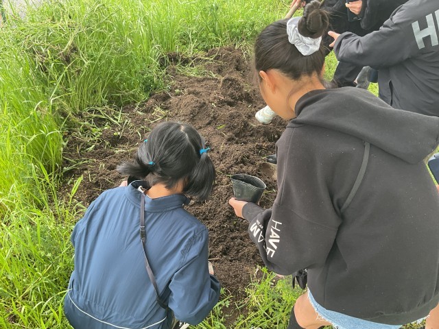 「植物は季節とともにどのように成長していくのか」を学習しています。これから育てていく「ひょうたんの種まき」を行っていました。