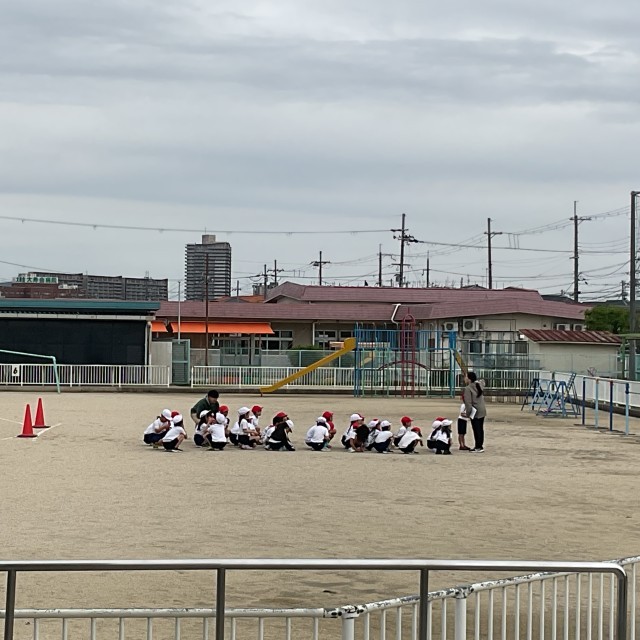 外の鉄棒では、ぶら下がりや足抜き回りなど、基本の動きを中心に練習しています。順番を守りながら、友だちの動きを見て学ぶ姿も見られました。