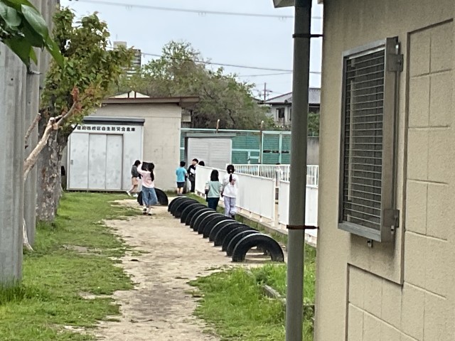 運動場を歩きながら、子どもたちは目を輝かせて春を探していました。