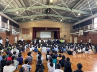 本日4限目、6年生の算数の授業の様子です。6年生の算数は、1つのクラスが2つのコースに分かれて少人数指導を行っています。きょうは、2つのコースとも、比例のグラフについて学習をしています。たとえば、直方体の水槽に水道から水を入れるときの、水を入れる時間と水槽の水の深さの関係を調べます。グラフに表すと、原点Oを通る直線になるのですが、児童たちはこのことに気付いているようでした。また、どちらのコースの児童も、それぞれの課題に対し、しっかりと取り組んでいました。