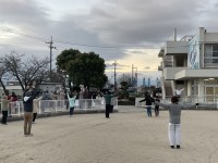 今朝は、ところどころ青空も見える、いいお天気になりました。正門付近では有志の児童たちが、いつものようにあいさつを行っています。きょうも気持ちのいいあいさつを交わすことができました。
