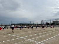 本日の登校時の様子です。今朝の気温は約4度で、曇っています。風はなく、それほど寒くはありません。正門付近では、たくさんの有志の児童たちが、いつものようにあいさつを行っています。きょうも気持ちのいいあいさつを交わすことができました。