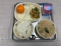 今日のメニューは「寒い冬でもへっちゃら!?心も体もあったまる和風シチュー、白菜の炒め物、ぽんかん、ごはん、牛乳」でした。※今日の大おかずは、さだ東小学校のお友達が考えてくれました。旬の野菜や魚を使って...