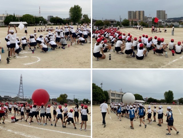 運動会の全員競技「大玉転がし」と応援団の練習をしました。