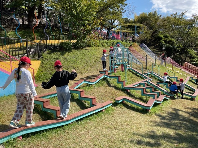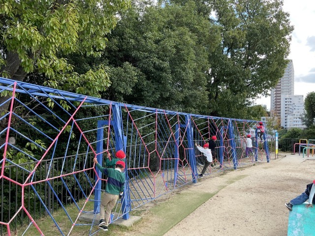 体をいっぱい動かして遊びました。昼食の前と昼食後にも遊ぶ時間があり、