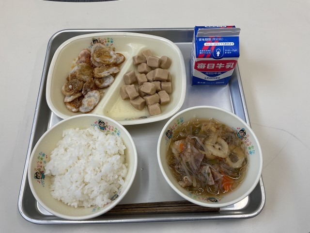 今日のメニューは「タイピーエン、揚げごぼうのごまだれ、高野豆腐のふくめ煮、ご飯、牛乳」でした。