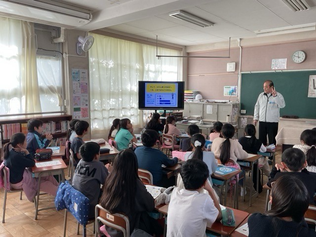 外部から講師の方をお招きして4年生で防災学習を実施しました。4年生は社会科の中で防災について学び、総合的な学習の時間でさらに学びを深めています。今日の学習では、災害でライフラインが遮断された時に、身の回りのものをうまく活用して生活する術についても教えていただきました。