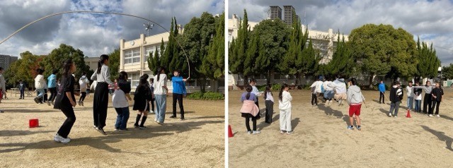 児童会委員主催で昼休みに大縄跳びチャレンジをしました。参加したい人は自由に参加でき、学年ごとの5人組で何回跳べるか競いました。5年生のあるグループが31回を跳び、今回のトップでした。今日は職場体験で小学校に来ていた西中学校の生徒も参加してくれました。