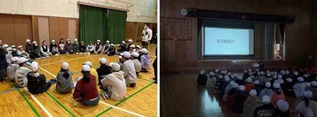 楠葉西中学校で小中交流会がありました。西小と南小の6年生が集まり、中学校の授業を参観させてもらったり、クラブ活動の紹介動画を見たりしました。