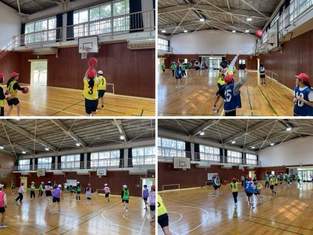 体育館での体育ではバスケットボールをしています。