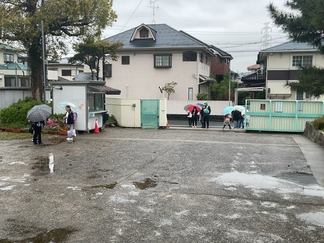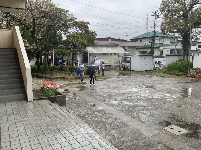 4月10日はあいにくの雨模様。下校の時間も雨が降り、傘が活躍していました。