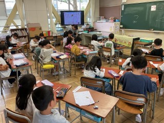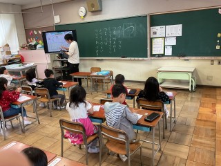 4月15日の学校の様子です。1年生はひらがなの「つ」の学習です。つのつく言葉をたくさん知っている1年生です。