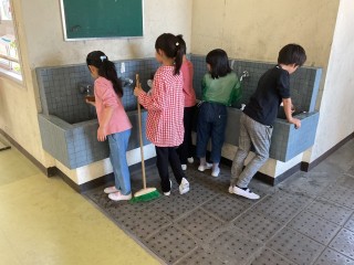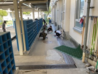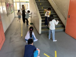 学校の中をそれぞれの持ち場に分かれて、きれいに掃除していて感心しました。