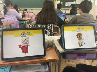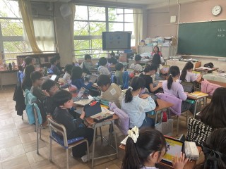 4年生の教室では社会の時間にゆるキャラ題材にした学習で盛り上がっていました。