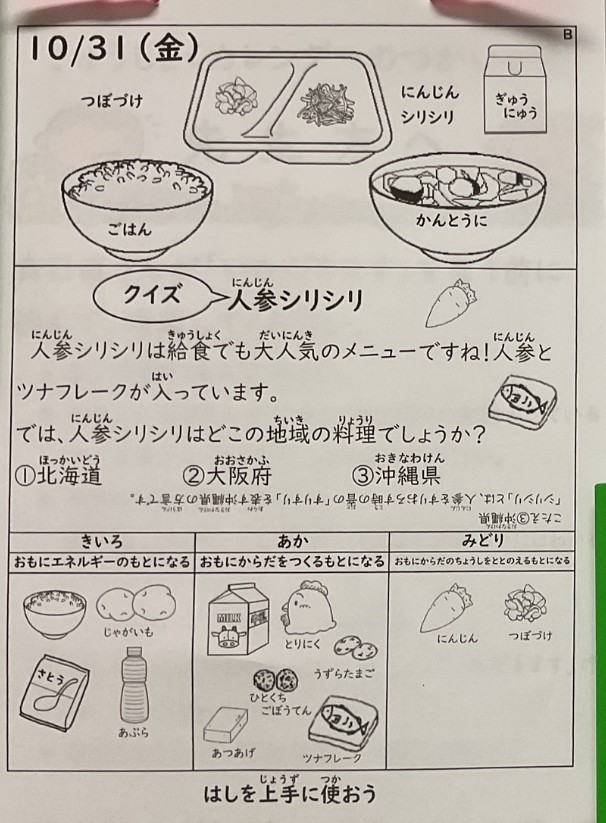 10月31日(金)今日の給食