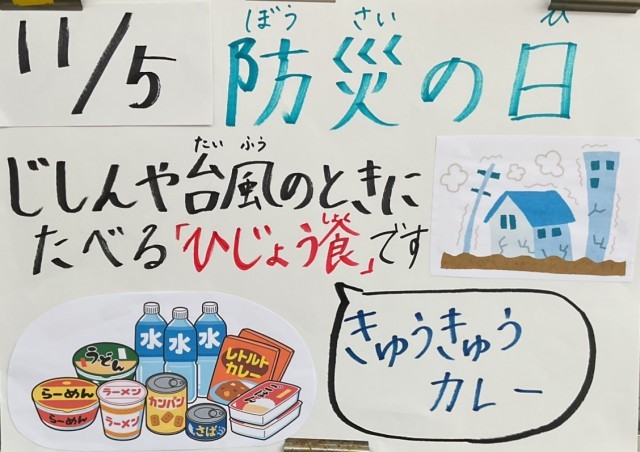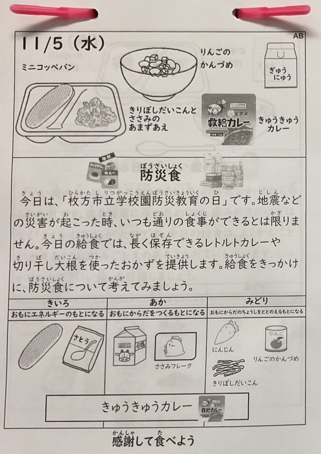 11月5日(水)今日の給食 枚方市学校園「防災教育の日」