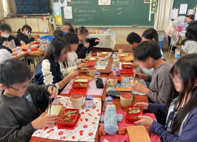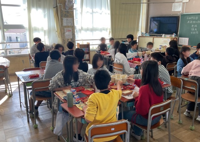 中学校給食の試食会のお祝いで、