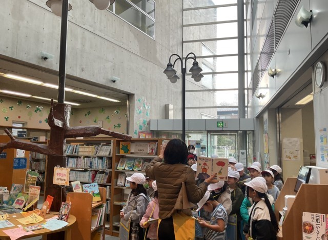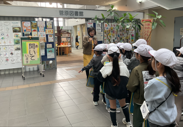 11万冊所蔵の図書館見学に大満足の様子でした。