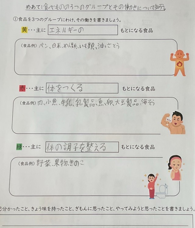 11月20日(木)5年生 家庭科「食べ物の3つのグループとその働きについて知ろう」です。