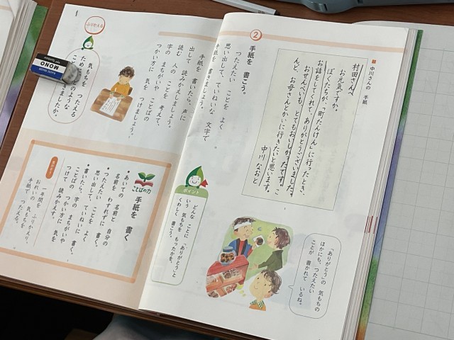 お店の人にインタビューしたことを思い出して手紙を書きます。