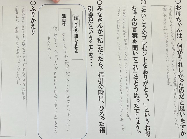 4年生 道徳 「ふくびき」です。