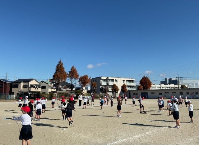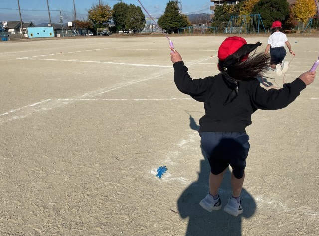 1年生は、運動場で縄跳びです。