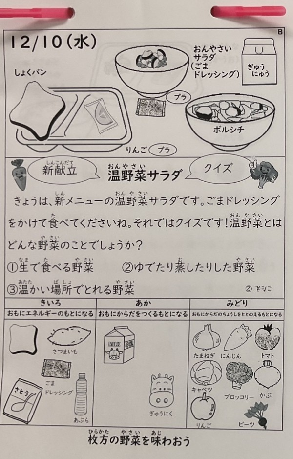 12月10日(水)今日の給食