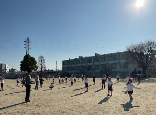 交差跳びに挑戦する子どもなど
