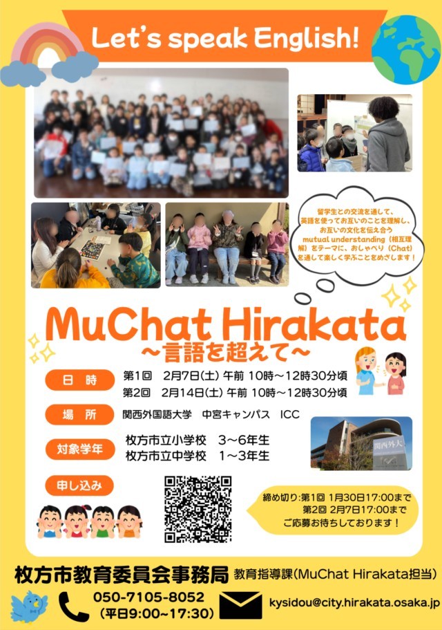 留学生との交流を通して、英語を使ってお互いのことを理解し、お互いの文化を伝え合う相互理解をテーマに、おしゃべりを通して楽しく学ぶことをめざします。