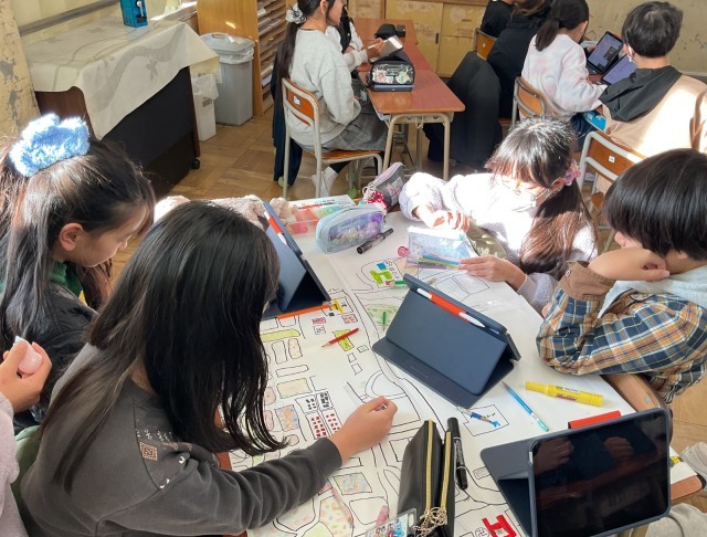 それぞれのグループに分かれて「防災学習」が進んでいます。