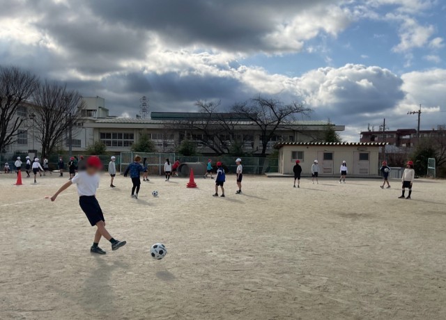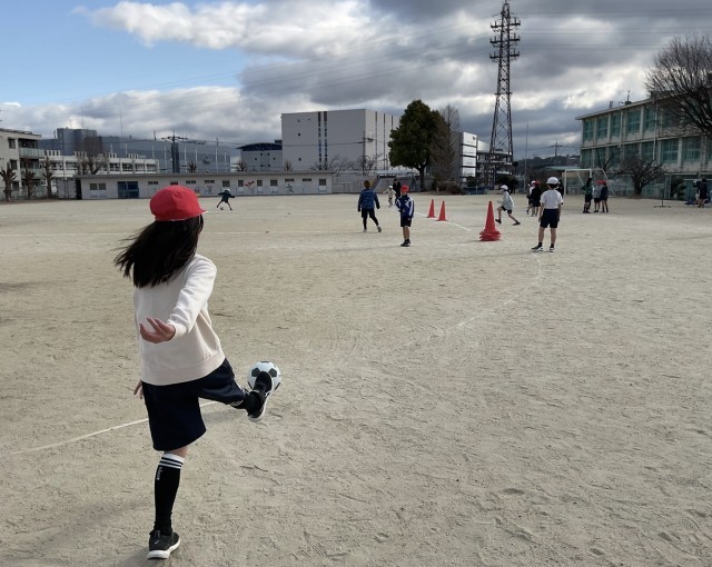 運動場を4周走ったあとは、サッカーです。