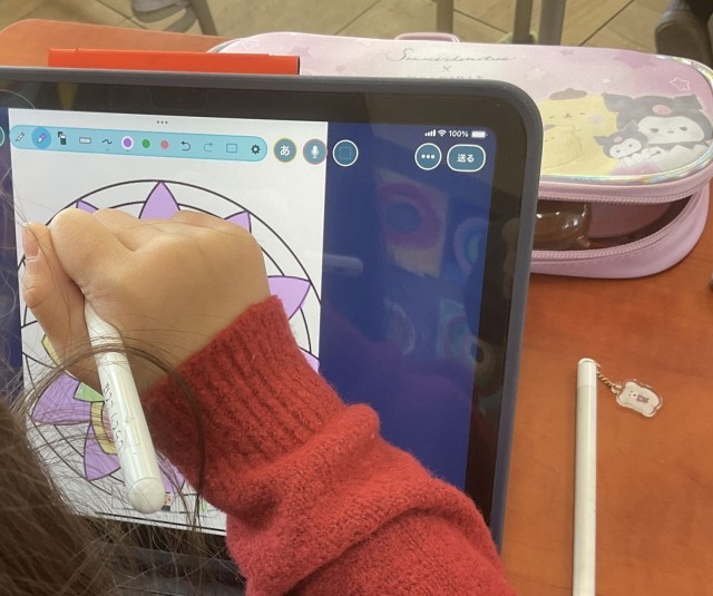 3年生 朝学習の時間に集中して、タブレットペンを動かしています。