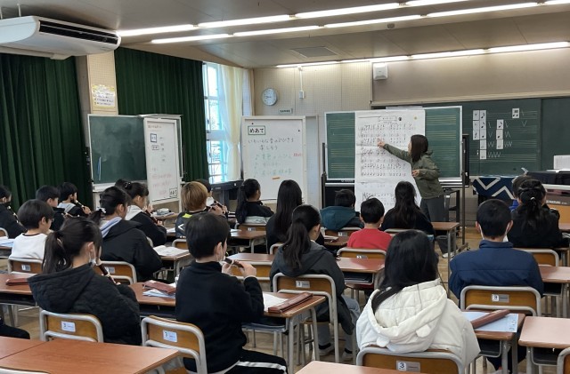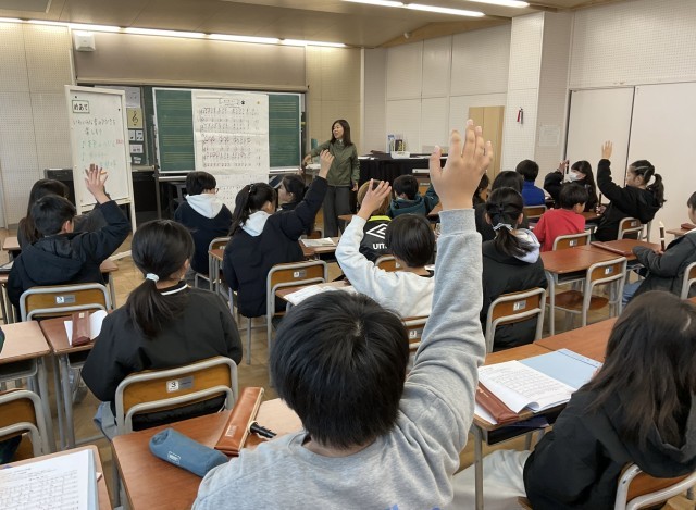 主旋律と副旋律に分かれて、音の重なりを感じながら演奏します。