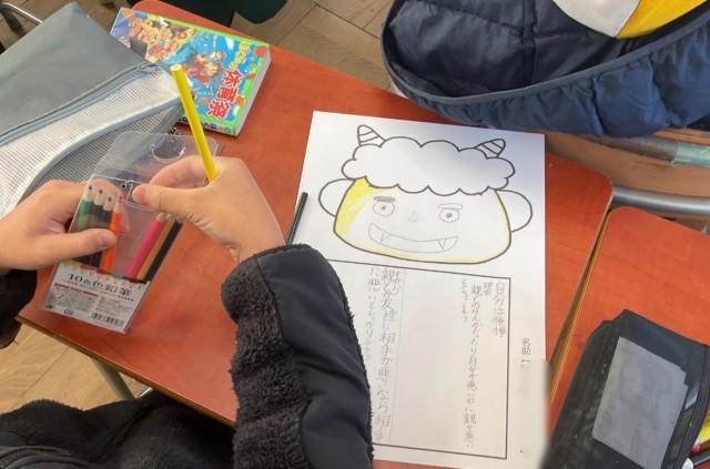 自分の心の中にある悪い「魔(ま)」を「滅(め)」するために、心の中の鬼を見つめています。
