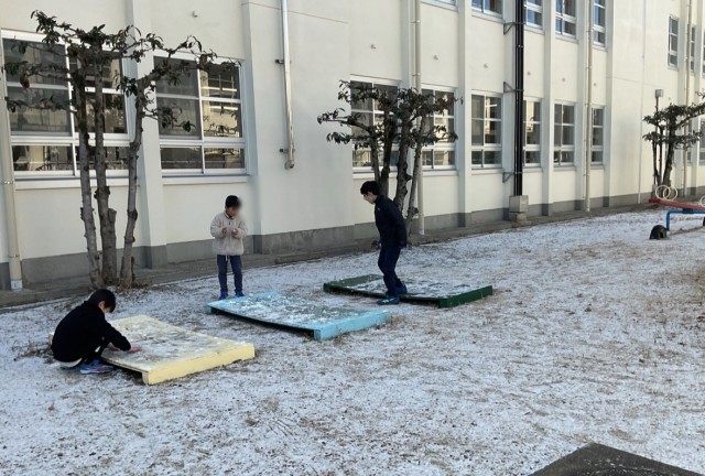 今日の校庭は、うっすらときれいな雪化粧でした。