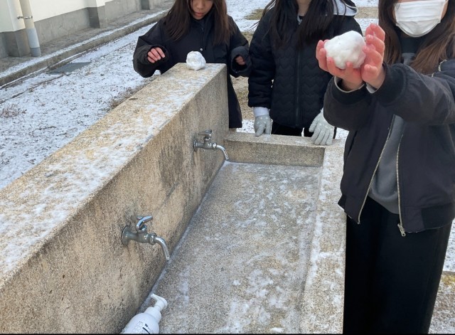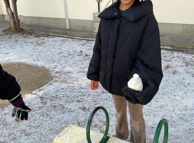 子どもたちは、「冷たい!♪」と大きな声を出しながらも、雪を一生懸命集め、手の平で愛らしいミニ雪だるまを作ったり、誇らしげに雪玉を見せあったりしていました。