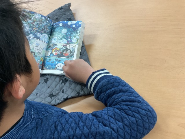 自分だけの世界に入り込み、一文字一文字を追って読書に没頭する子ども。