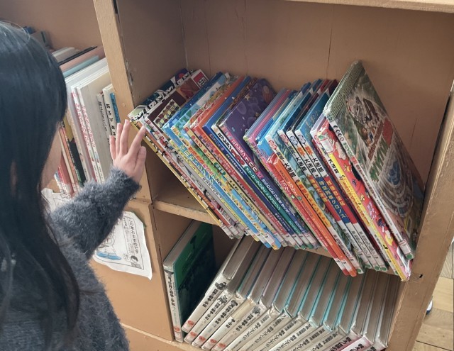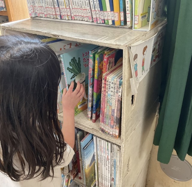 「次は、何の本を読もうかな〜」と目を輝かせて本棚から探す子ども。