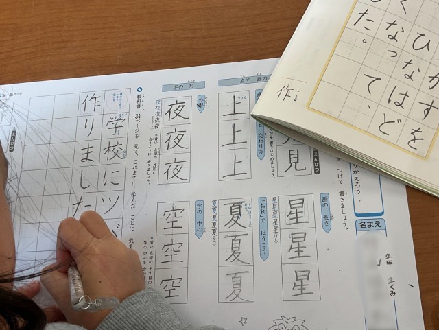 一画ずつ確かめながら、静かに鉛筆を動かしています。
