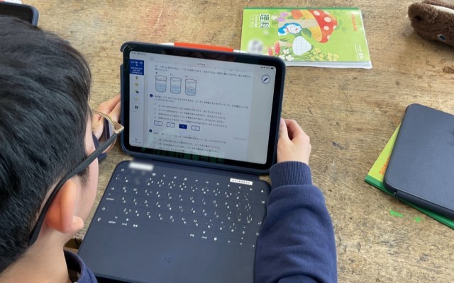 タブレットを使いこなして自分の考えを言語化する子ども。