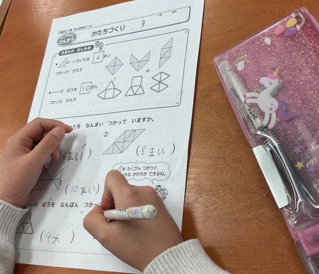 図形の中に番号を振ったりと、工夫して正確に数えようとする丁寧な姿勢が見られましたよ♪
