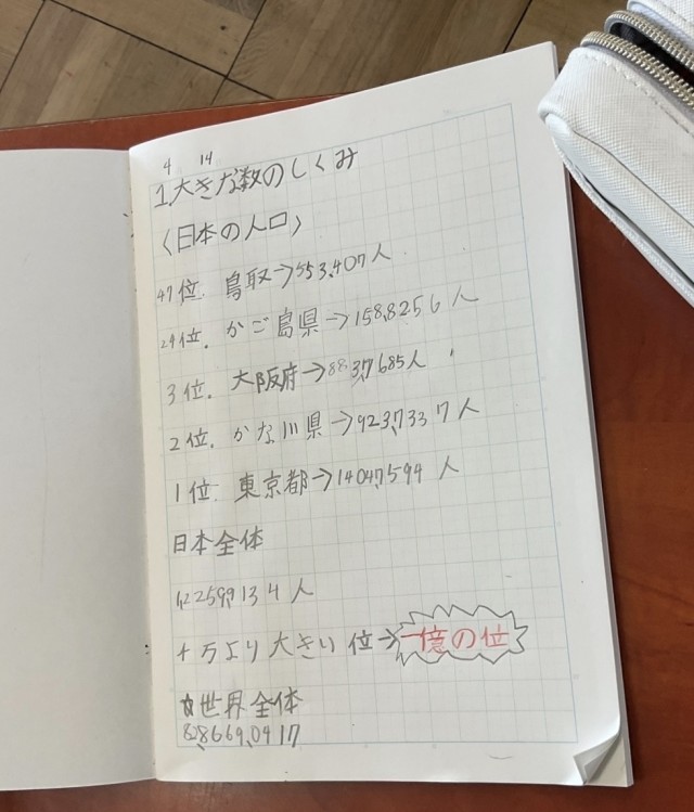 今日は「億の位」の学習です。