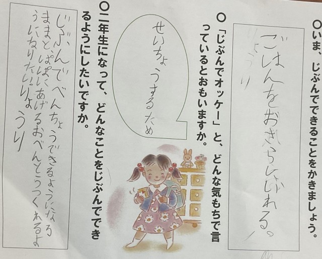2年生になって、どんなことを自分でできるようになりたいかな?