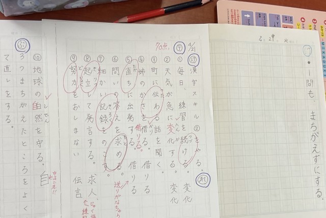 ただ練習するのではなく、まずは実力を確かめるために、自分でテストをして丸付けを行います。