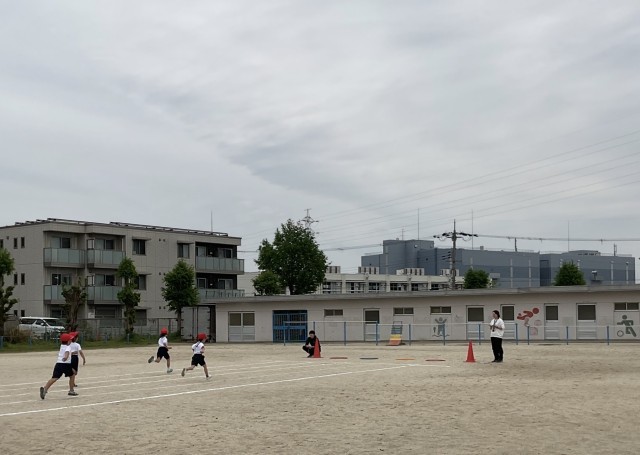 1年生は体育の時間に「50メートル走」に挑戦です。