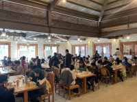 退館式です。お世話になった宿舎の方々に御礼の挨拶です。美味しい食事、ふかふかの布...